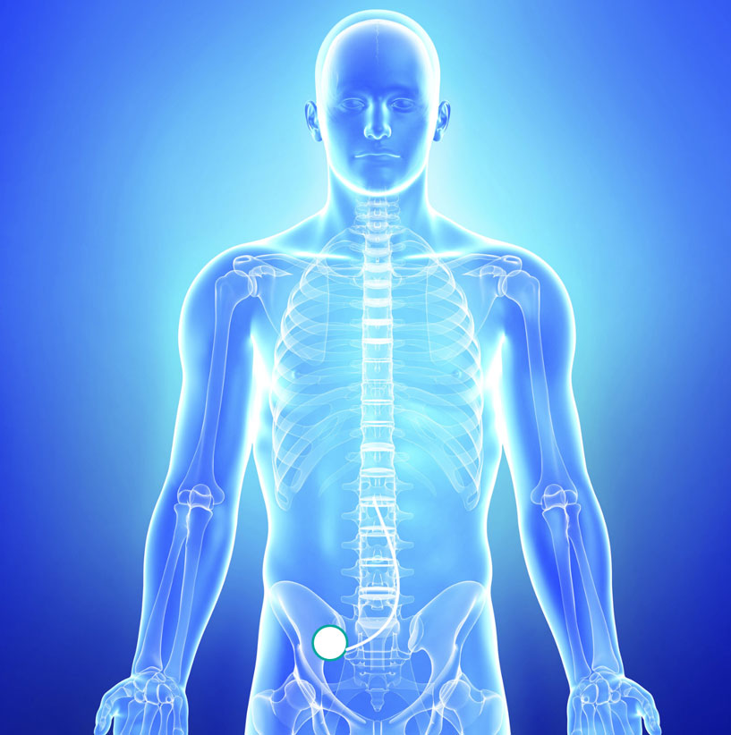 The system consists of a pump and catheter, both of which are surgically placed under the skin. The pump is implanted in the abdominal area, just above or below the beltline. A thin, flexible tube, called a catheter, connects to the pump and is tunneled under the skin to the site where medication is to be delivered. The pump releases the medication at the set rate, and the medication flows from the pump, through the catheter, to the site of delivery in the intrathecal space.